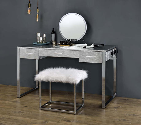 Piety - Writing Desk (Same Ac00893) - Silver Synthetic Leather & Champagne