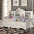 This classic Estrella daybed will be a wonderful addition to the youth bedroom in your home. This piece has great style and function, with crown craving bed and case good, this piece can provide a comfortable place to lounge during the day, and cozy spot to sleep at night. The convenient storage drawers below allow you to easily store stuff. Matching bench, nightstand, dresser, chest and desk offer a lot of other functions and spaces as your reference.