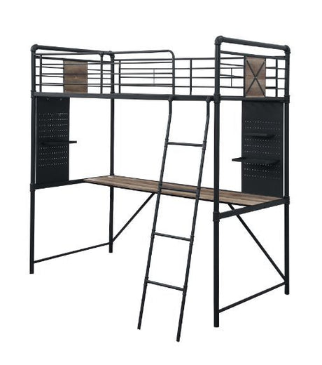 Cordelia - Twin Loft Bed With Desk - Antique Oak, Sandy Black & Dark Bronze Hand-Brushed