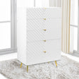 The Gaines Collection is a glamorous and sophisticated grouping that adds a chic style to any room. The white gloss finish and gold metal accents help to accentuate the clean lines of the pieces and add a pop of glamour. The diagonal line design adds visual interest and texture, making each piece stylish. With a variety of storage options to meet your needs.