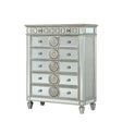 The Varian mirror provides a commanding presence in any room. Add a dash of glam to your bedroom with this Varian mirror. This gorgeous mirror is accented with raised geometric patterns and mirror finish. This fashionable chest will fuse with the surrounding Decor, transforming a room from ordinary into something interesting and sophisticated.