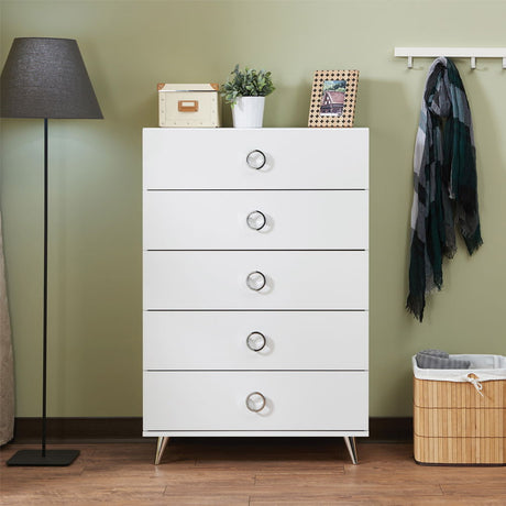 Olivia - 5-Drawer Bedroom Chest Of Drawers - Pearl White
