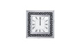 The Marku floating crystal wall clock, is sure to be focal point of any room. This stylish wall clock features a square mirror frame inlaid black floating crystals on a black background around the face. The clock face has a clean, modern look featuring roman numerals.
