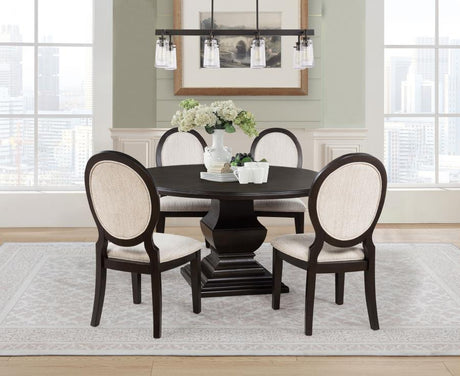 Barton - 5 Piece Round Wood Dining Table Set - Dark Brown