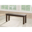 Create a beautiful interior dining space with the stylish Nabirye dining room collection. This sophisticated dining room table has matching case pieces including a backless bench and armless ladder-back chairs with tapered legs and PU upholstered seat cushions. This stylish and detailed collection is ideal for a large gathering and will add elegance to any dining room Decor.