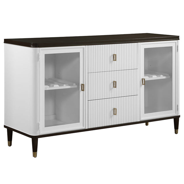The Carena dining set exudes timeless elegance with its white and brown finish. The rectangular dining table features an extension top, perfect for hosting larger gatherings. Paired with stylish side chairs and a matching server, this set combines form and function beautifully. The server offers ample storage, making it both practical and sophisticated, ideal for enhancing any dining room ambiance.