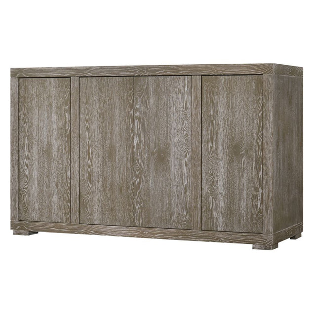 Ideal for a sophisticated dining area, the Gabrian dining collection and its beautifully artistic accents will transform a conventional room into a luxurious dining space. The table features a spectacular double pedestal base with fluted column design type setting. While the chairs are upholstered in a two-tone beige fabric. Every piece of the collection brings a high-fashion look to a cottage-themed living space.