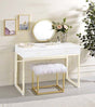 Adao - Vanity Mirror & Stool - Faux Fur, Mirror, White & Brass