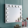 Feel fabulous with every glace and always be the star of the show with the Noralie Hollywood mirror. This mirror will change the way you do your hair and makeup, making the entire experience much more enjoyable. This vanity mirror is designed for wall-mount use. The inlaid faux diamonds add more dazzle to the piece. *Bulbs Not Included