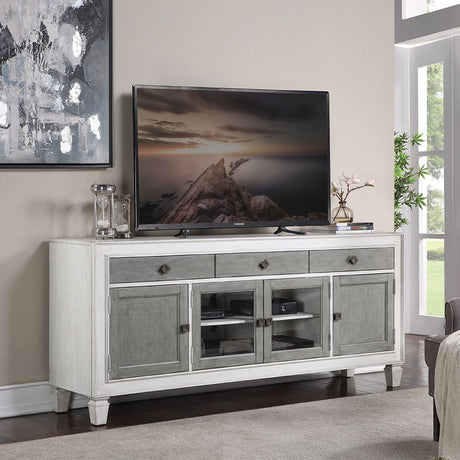 Noralie - TV Stand With Fireplace - Mirrored & Faux Diamonds