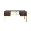 The industrial and classic design of the Yumia desk creates a spacious work area. The drawers maximize your space and your options in classic style, while keeping all your essentials neatly and safely tucked away. The gold finish and tempered glass top, add a different look to any work space.