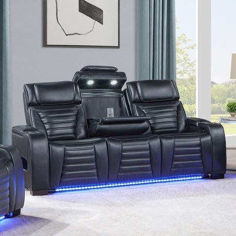 Ephron - Power Motion Loveseat With Console, Power Headrests, LED & Speakers - Black