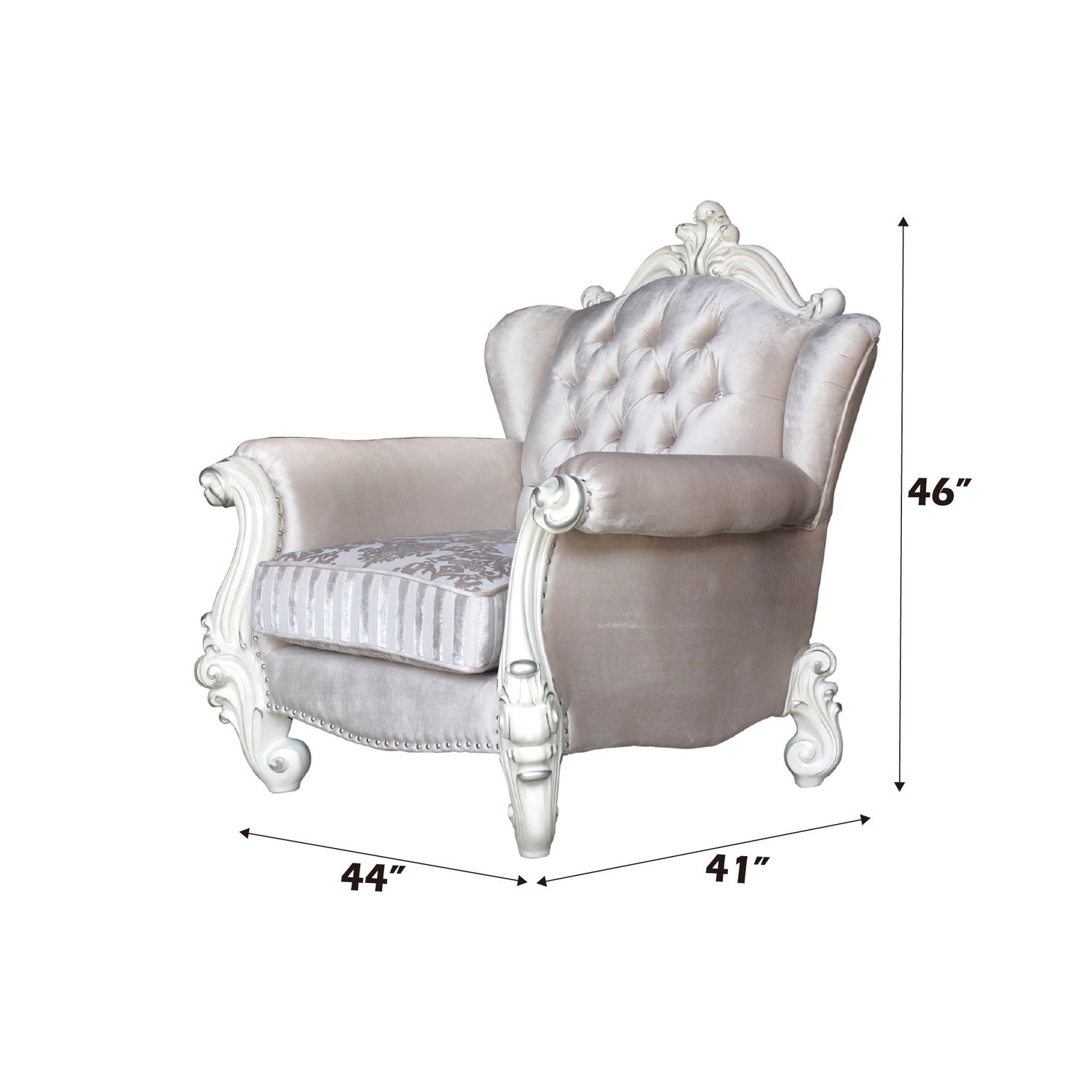 Versailles - 46" Chair With 2 Pillows - Ivory Fabric & Bone White