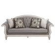 Florian - Sofa With 4 Pillows - Gray Fabric & Antique White