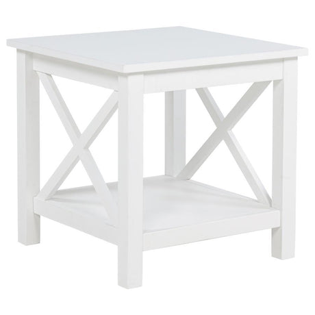 Skyview - Square Pine Wood Side End Table With Shelf - White