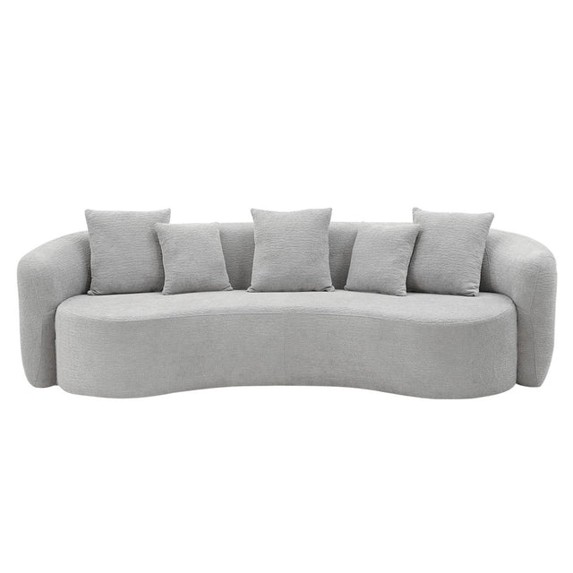 Indulge in the plush comfort of the Barasa Sofa, where modern style meets everyday relaxation. Designed with cushioned back support and brand-new high-density foam seat cushions, it offers lasting comfort for lounging, reading, or entertaining. Upholstered in chic chenille and shown in a versatile modern gray, its curved silhouette adds a soft, contemporary statement to any space. The spacious design creates the perfect spot to unwind, whether in a living room, bedroom, apartment, loft, or office. For added convenience, the Barasa sofa ships compressed for easy delivery and expands to its full size once opened, bringing effortless style and comfort straight to your door.