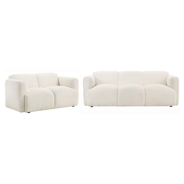 Dorset - 2 Piece Upholstered Round Track Arm Sofa Set - White