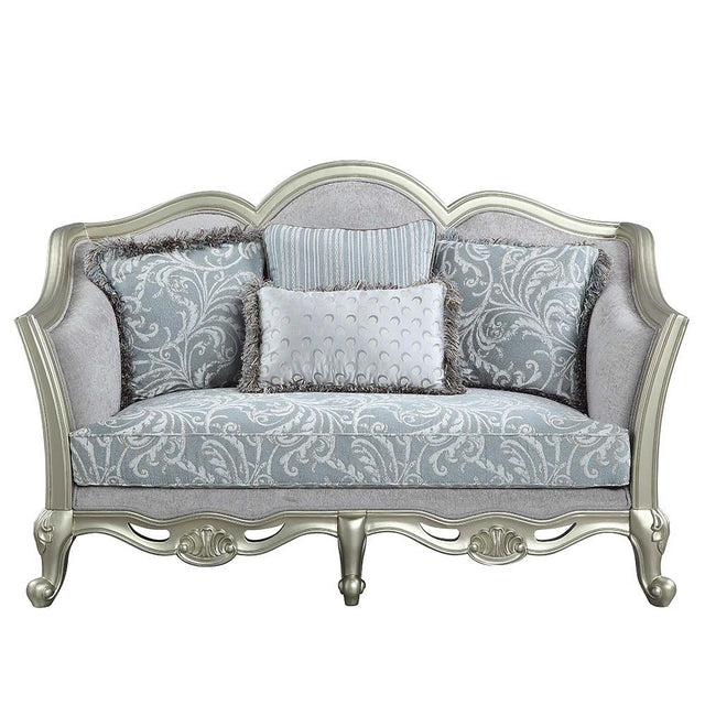Qunsia - Loveseat With 4 Pillows - Light Gray Linen & Champagne
