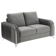 Make a bold statement with the Wenona velvet loveseat. The color of the velvet upholstery is a classic color that will provide a fun pop of color in any home. This loveseat is highlighted with polished chrome trim accents along the armrests and legs to match. The armrests boast eye-catching vertical pleating that creates a beautiful contemporary 3D effect. This loveseat offers plush pocket coil seating for hours of comfort around the TV with the family.