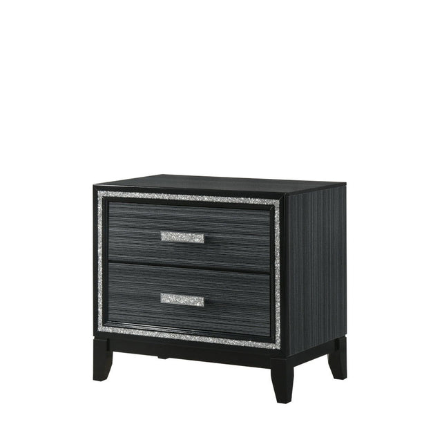 Classic design with touches of modern aspects makes this Haiden Nightstand ideal for any bedroom. The piece offers a rectangular tabletop and two storage drawers for displaying or organizing. It also features a glamorous shimmering silver accent trim that adds richness to design. The drawer handles with the same shimmering silver tie them all together to create a cohesive look. The finish makes it easy to fit into already existing decor.