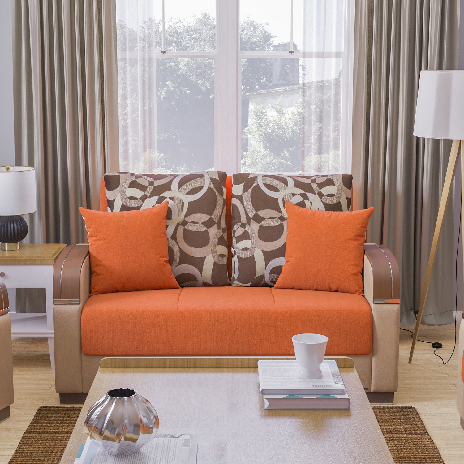 Ottomanson Mobimax - Upholstered Convertible Loveseat With Storage - Orange