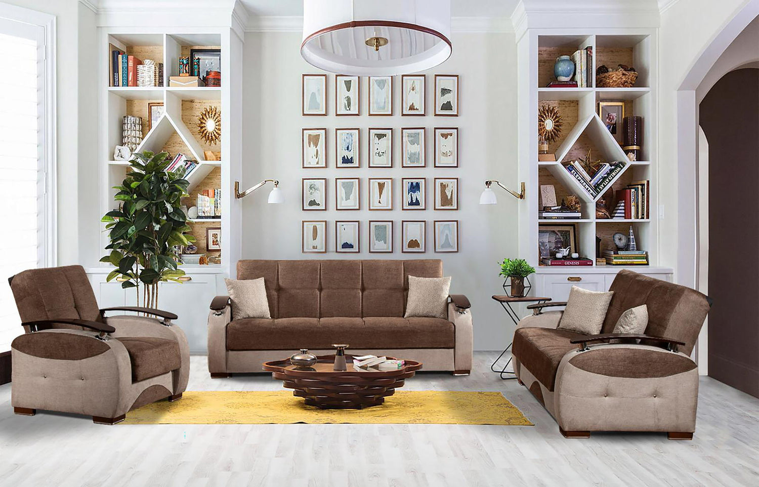 Ottomanson Yafah - Convertible Sofa Bed With Storage - Brown & Beige