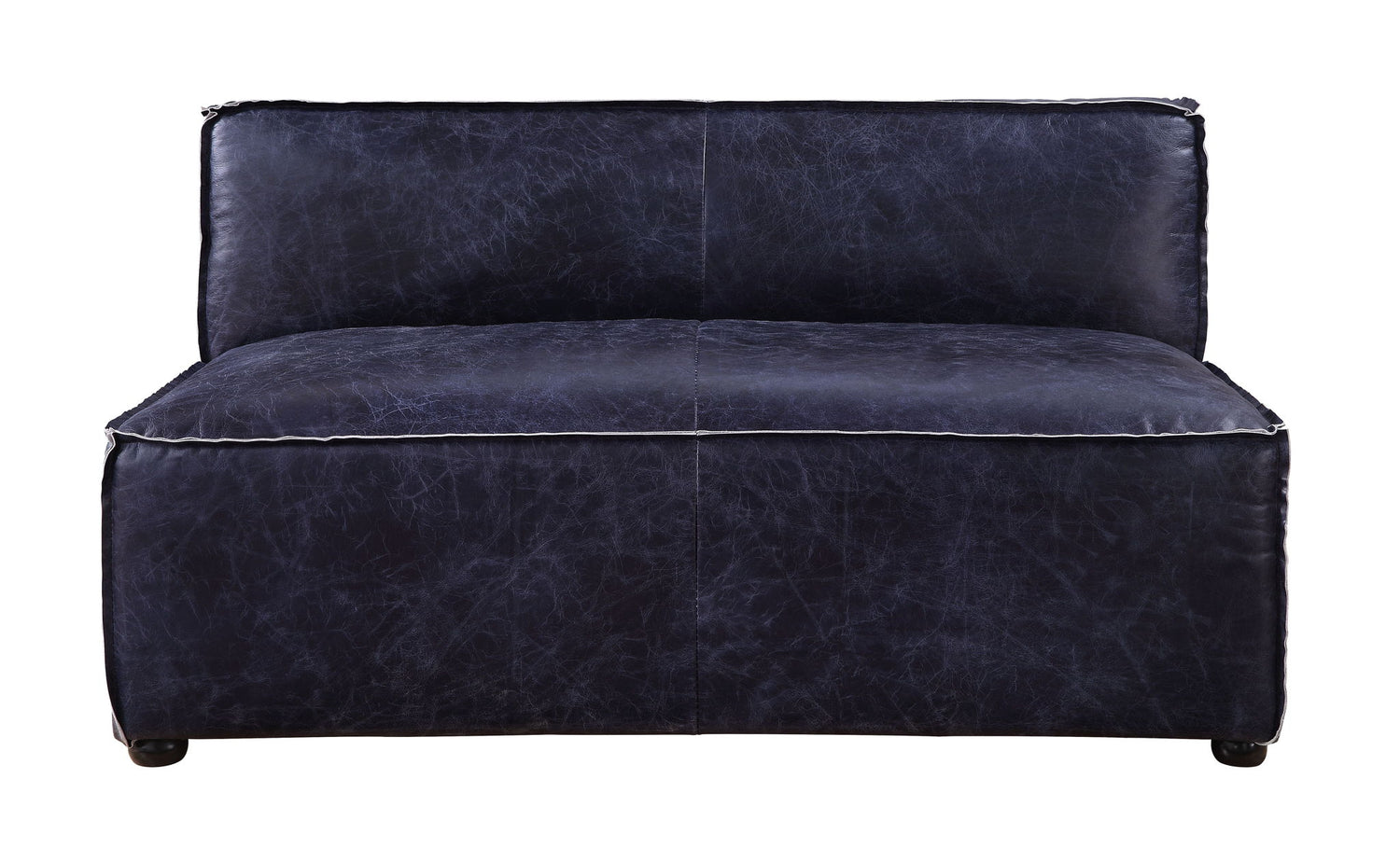 Birdie - Modular Armless Loveseat - Vintage Blue Top Grain Leather