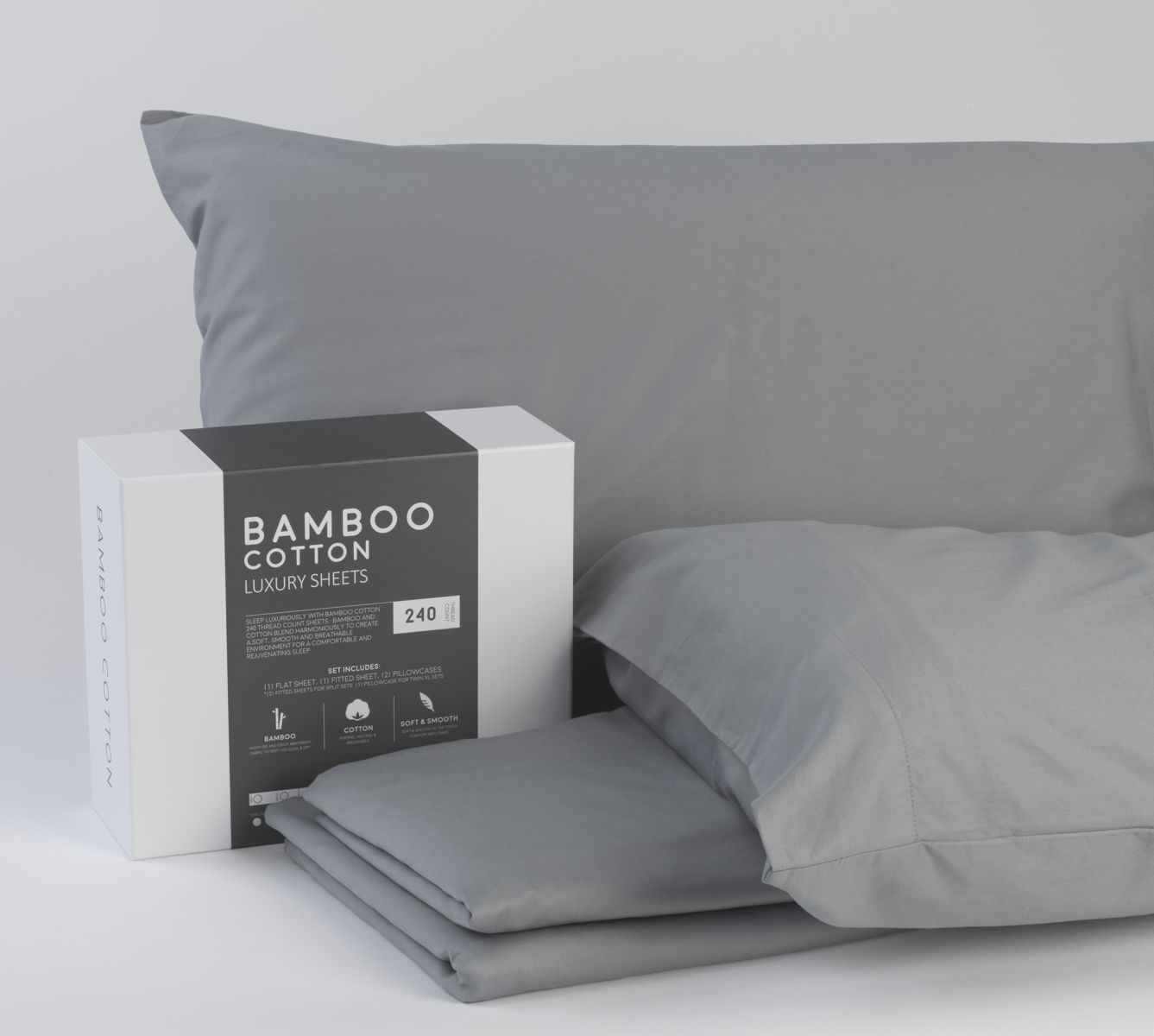 Split King Bamboo Cotton Sheets Top - Dark Gray