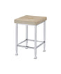 Alluring in its simplicity and function, this versatile counter high table is design with two open shelves on the base. Comprised of stark lines and sleek angles, its modern metal base paired with wooden shelves tell us simple really is better. A chrome finish gives the table a glam look and feel. It offers a spacious table top and storage compartments that work great in homes with limited space. Associated your space with simplicity, neutral tone, and clean lines, the contemporary-style counter high stool matches any decor of a dining room. The padded seat cushion is fully covered in a soft beige velvet, sitting atop a metal base shining with a chrome finish. Footrest is added to the metal base for extra durability and support. Give your dining room a minimalist design look and feel with the Raine counter height set.