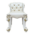 Tracing back to the classical Baroque era, expressed with intent and conviction, this Vendome vanity stool is donned in a pearl PU and an antique pearl finish that is richly accented with gold paint brushed onto the piece by hand. Exuding opulence with intensity, this dramatic and passionate design is crafted through a labor-intensive process where layer upon layer of prescribed finishes are applied to this piece of furniture, resulting in the rich and complex sheen presented before you. The vanity desk is sold separately.