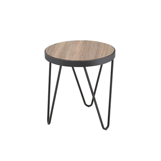 The Bage occasional collection express your hipness with stylish industrial inspired design, its top is the perfect match for your living room space. Its banded edge gives it a solid look setting on the 3 "V" dark metal legs.