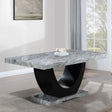 The Caralin dining set brings elegance and modern flair to any dining room. The rectangular table features a thick, engineered stone top with a U-shaped base, creating a stunning focal point. The fixed table top offers stability, while the upholstered chairs with nailhead trim add a touch of sophistication. Perfect for family dinners or entertaining guests, this set combines style and comfort seamlessly.