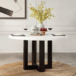 Edwyn - Round Dining Table - White Natural Marble Top & Espresso