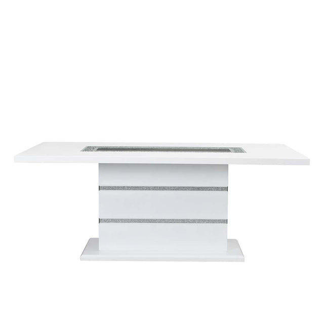 Marvelous and glamorous, the Elizaveta dining table is one to leave guests speechless. Featuring horizontal stripes of embedded faux crystals on the base that glimmer from every angle. The beautiful tabletop is just as impressive, with the same faux diamonds as the base to glam up dinnertime. The white high gloss finish is the perfect slate for any decor style.