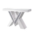 Noralie - Console Table, "V" Shape Pedestal - Mirrored & Faux Diamonds