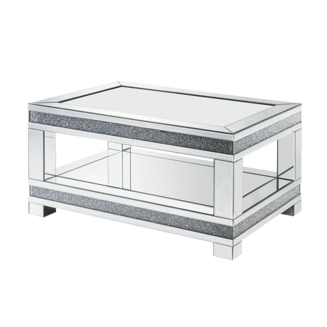 Noralie - Coffee Table With Open Compartment - Mirrored & Faux Diamonds