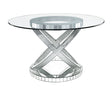 With glimmering details and extravagant designs, this attractive dining table is sure to enhance both your dining experience and dining space. This round dining table features smooth curves, and abstract line works for a modern glamour silhouette. The supporting pedestal showcases a criss-cross design complete with plenty of texture and personality. Clear glass tabletop makes faux diamond inlay on the pedestal glitter brilliantly under any available light. Let the Ornat Dining Table brings out the beauty of your dinnerware for a perfect dining party.