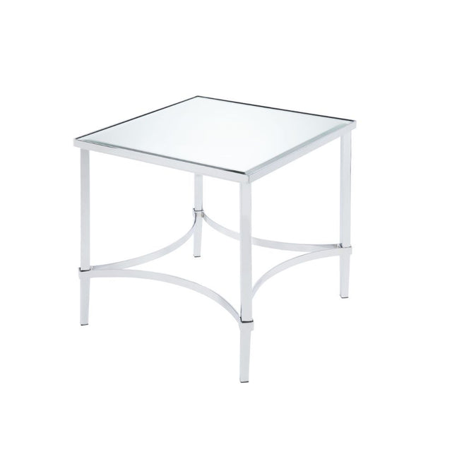 KD, Square Leg End Table • NO Storage (Open Base) • Beveled Mirrored Top & Chrome Finish Legs •• CONSTRUCTION •• Mirror Top: 5mm Mirror with Beveled Edge (No Apron) • Metal Straight Leg, Top Trim & "Diamond" Crossbar Support Frame: Chrome Finish, Metal Tube (13 x 26 x 1.2mm)