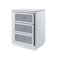 The Rekha End Table will give any room a touch of glamour. This contemporary end table is fully mirrored with a beveled edge and a stunning mirror top and drawer fronts with faux crystal inlay. Use this unique piece as the perfect accent for any room Decor. Three large drawers provide ample and convenient storage for books, remote controls, jewelry, and more.