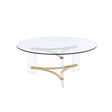 If you're looking for an elegant, minimalist coffee table that's also super sturdy, look no further than this one. The Sosi coffee table has legs that are made of acrylic, so they won't break or chip, and the glass top is clear so you can see through it to admire your home decor. The round shape means it will fit into any space in your home, but its gold metal accents make it look like something out of a magazine spread.