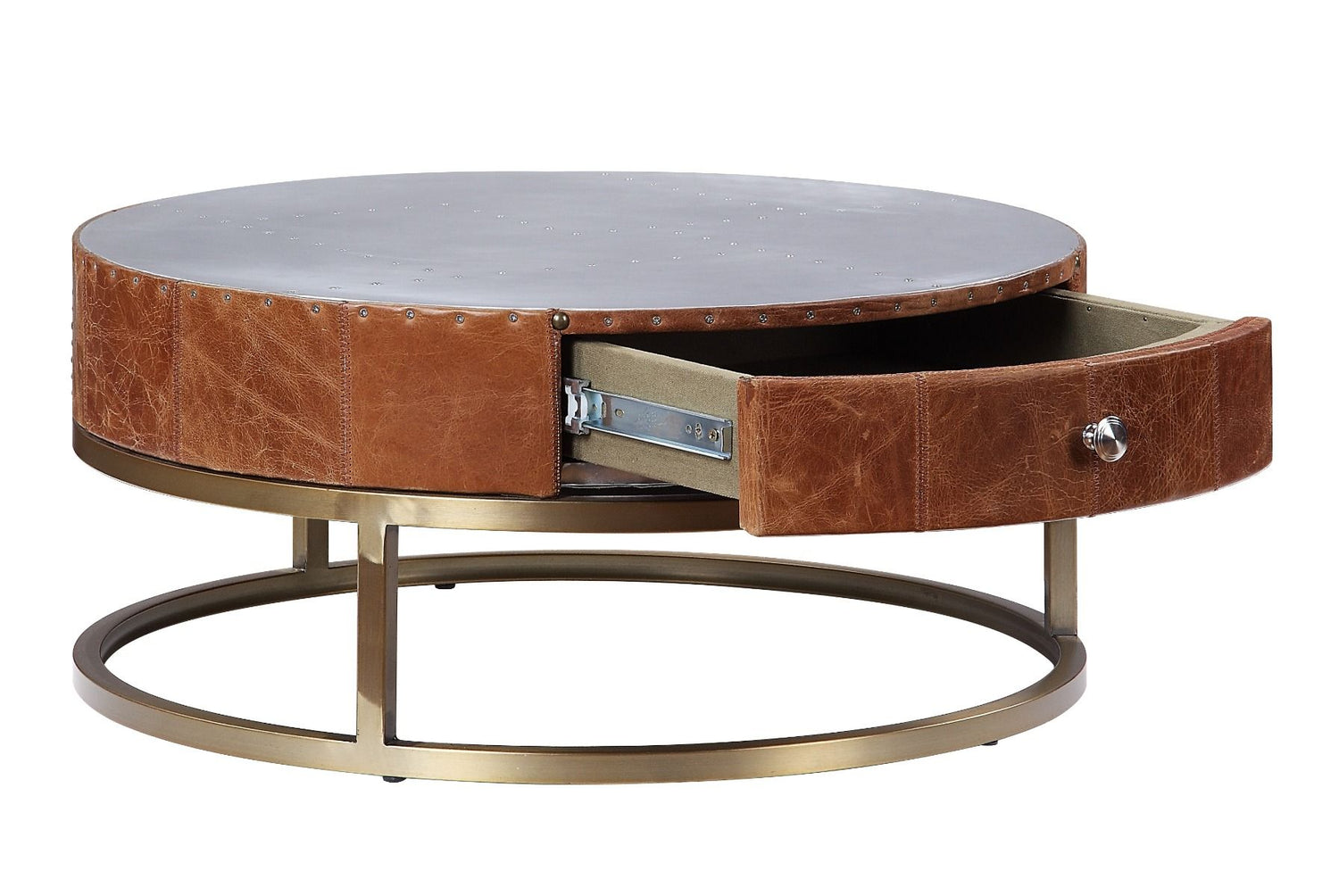 Tamas - 13" Coffee Table - Aluminum & Cocoa Top Grain Leather