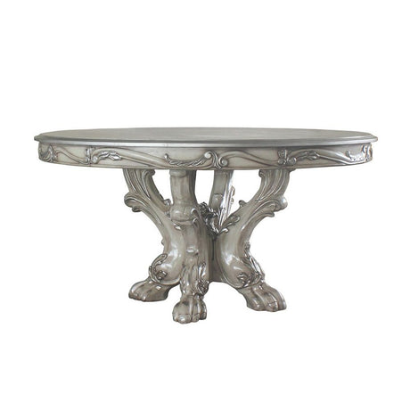 Zander - Dining Table - White Printed Faux Marble Top & Mirrored Silver