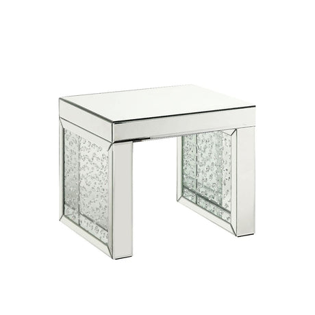 Noralie - 16" Square End Table With Glass Top - Mirrored & Faux Diamonds