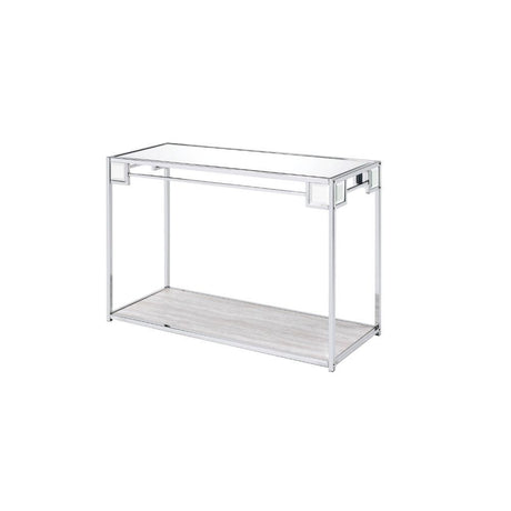 Zander - Coffee Table - White Printed Faux Marble Top & Mirrored Silver