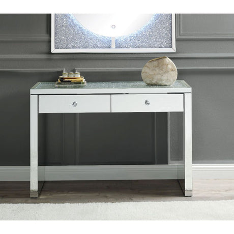 Noralie - Console Table, "V" Shape Pedestal - Mirrored & Faux Diamonds