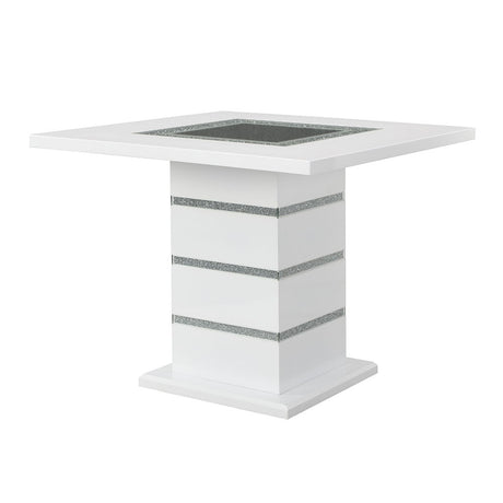 Elizaveta - Counter Height Table With Pedestal Base - Faux Crystal Diamonds & White High Gloss